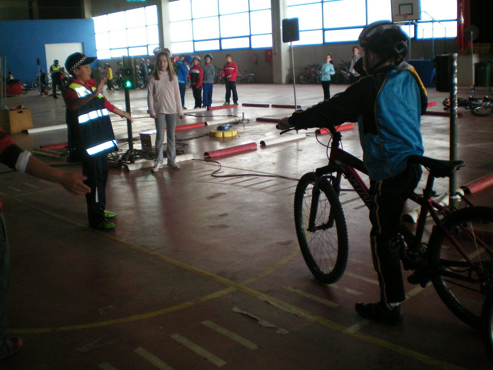 La parte práctica fue divertidísima, además de formativa. Fuimos a el recito “El Batel”, allí estaban instaladas dos pistas, una de adiestramiento en habilidad ciclistas y otro circuito con semáforos, señales, calles, etc. Además tuvimos la posibilidad de desempeñar la labor de la policía. dirigienido el tráfico.
